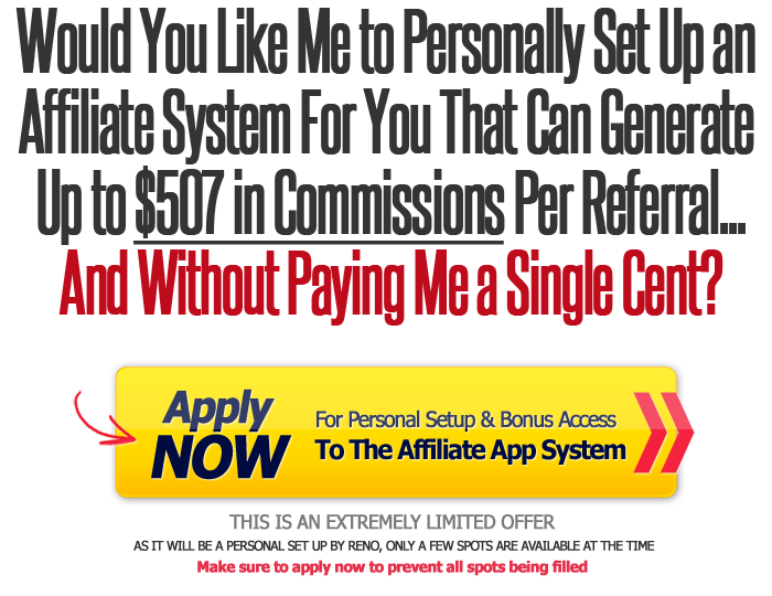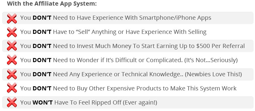 If you mostly want a simple, solid system, that is easy (and quick) to set up, earns you big commissions (Up to $500 per referral) and can start generating profits in less than 1 day… The Affiliate App System will be for you.