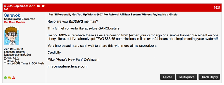 I benefited greatly from Reno's other program, so am seeing how this just takes it to the next level and opens up more returns for me in terms of affiliate revenue. Thanks Reno, Looking forward to another solid long term income producer!